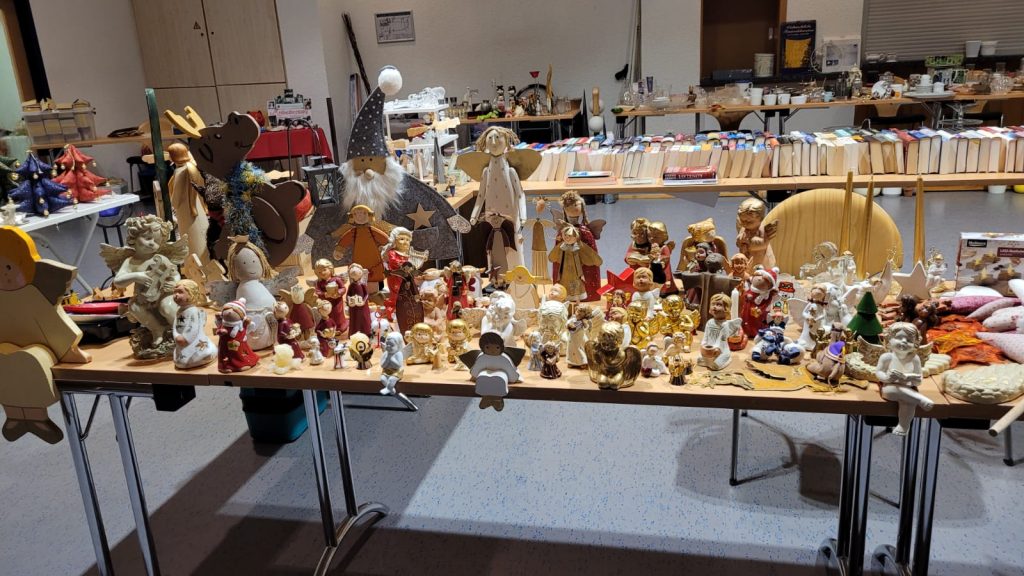 Seit mehreren Jahren sammelt KIZ Gegenstände rund um das Thema Weihnachten, aber auch Alltagsgegenstände, um diese zum Ende des Jahres in der Kubacher Volkshalle günstig zum Verkauf anzubieten.