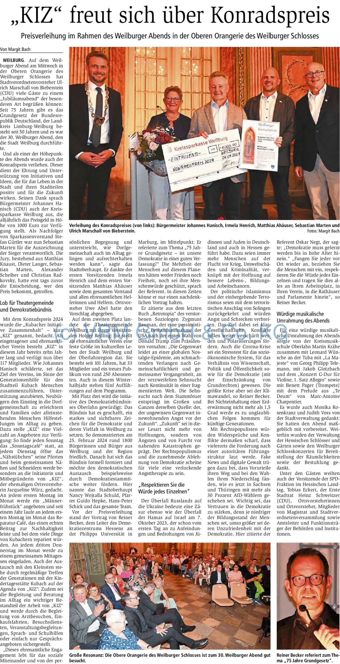 Konradspreis 2024 für KIZ, Weilburger Tageblatt , 4.9.24