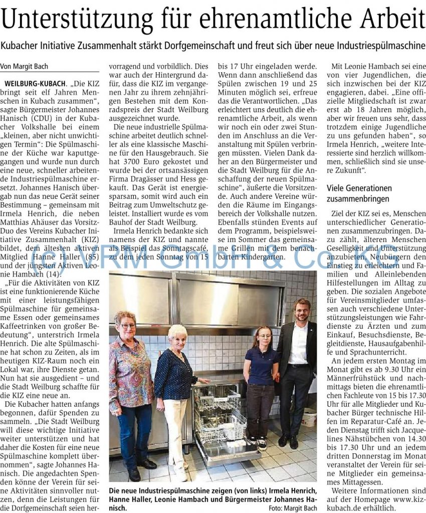 Neue Spülmaschine für KIZ, Weilburger Tageblatt vom 14.3.2025